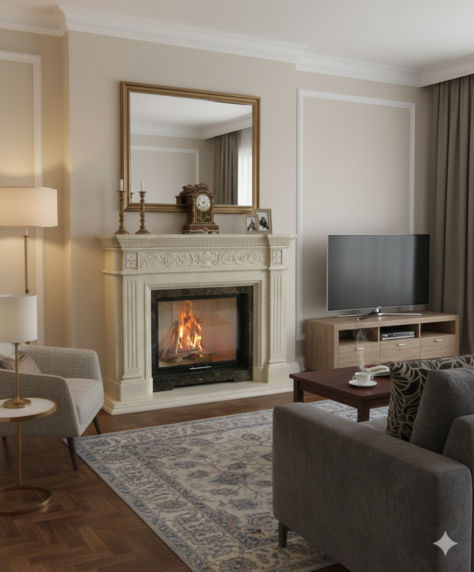 Klasik bir şömine, sadece bir oda ısıtıcısı değildir; o bir toplanma noktasıdır. Çatırdayan odun sesinin eşlik ettiği o eşsiz atmosfer, nostaljiyi ve huzuru evinize getirir. Salonunuzun merkezinde yer alan bu heybetli yapı, mülkünüze değer katar ve nesiller boyu sürecek bir gelenek başlatır.